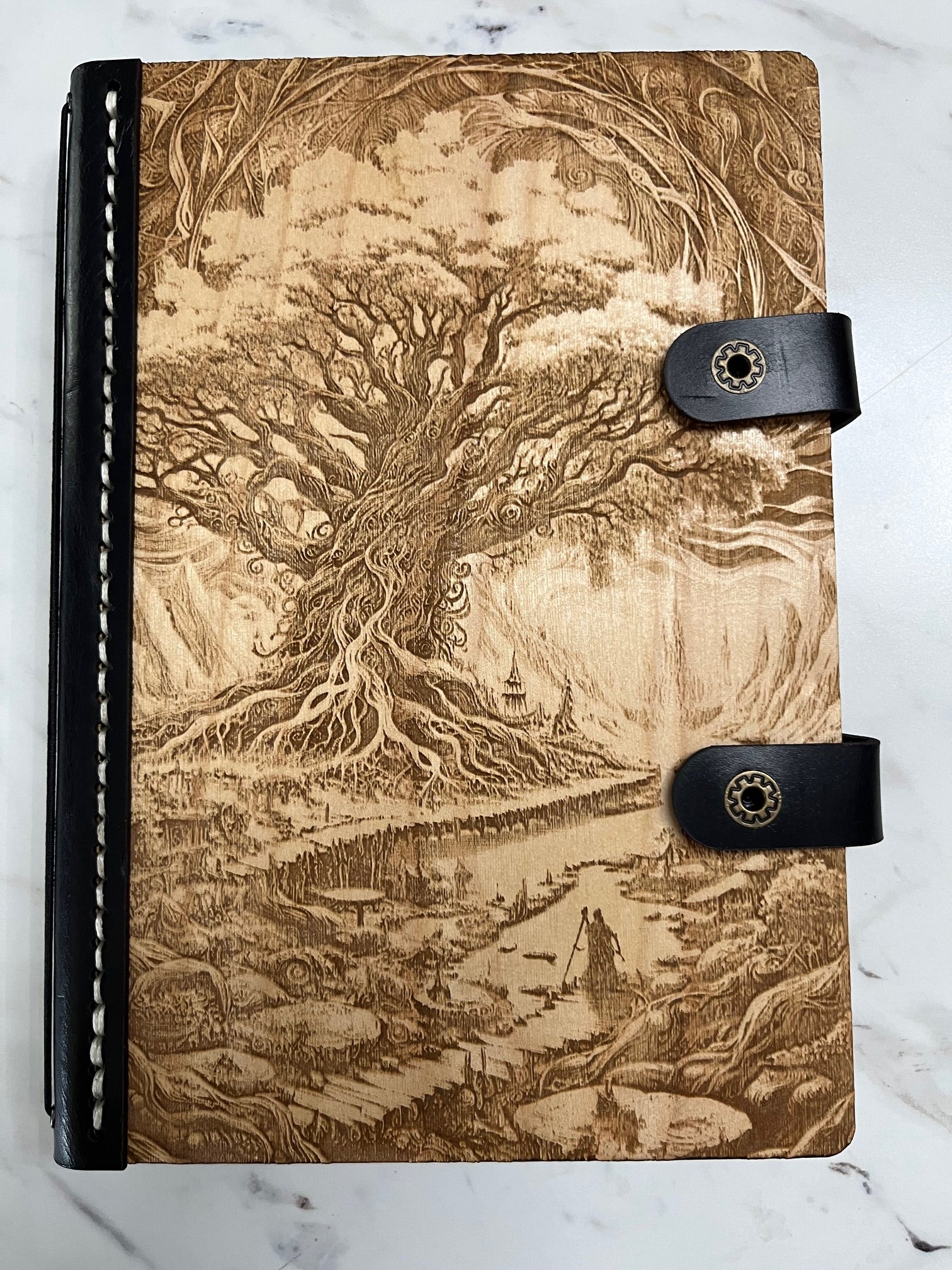 Our hand-stitched journals blend nature and craftsmanship beautifully. Made from white birch wood and genuine leather, each journal features unique, custom-engraved designs.