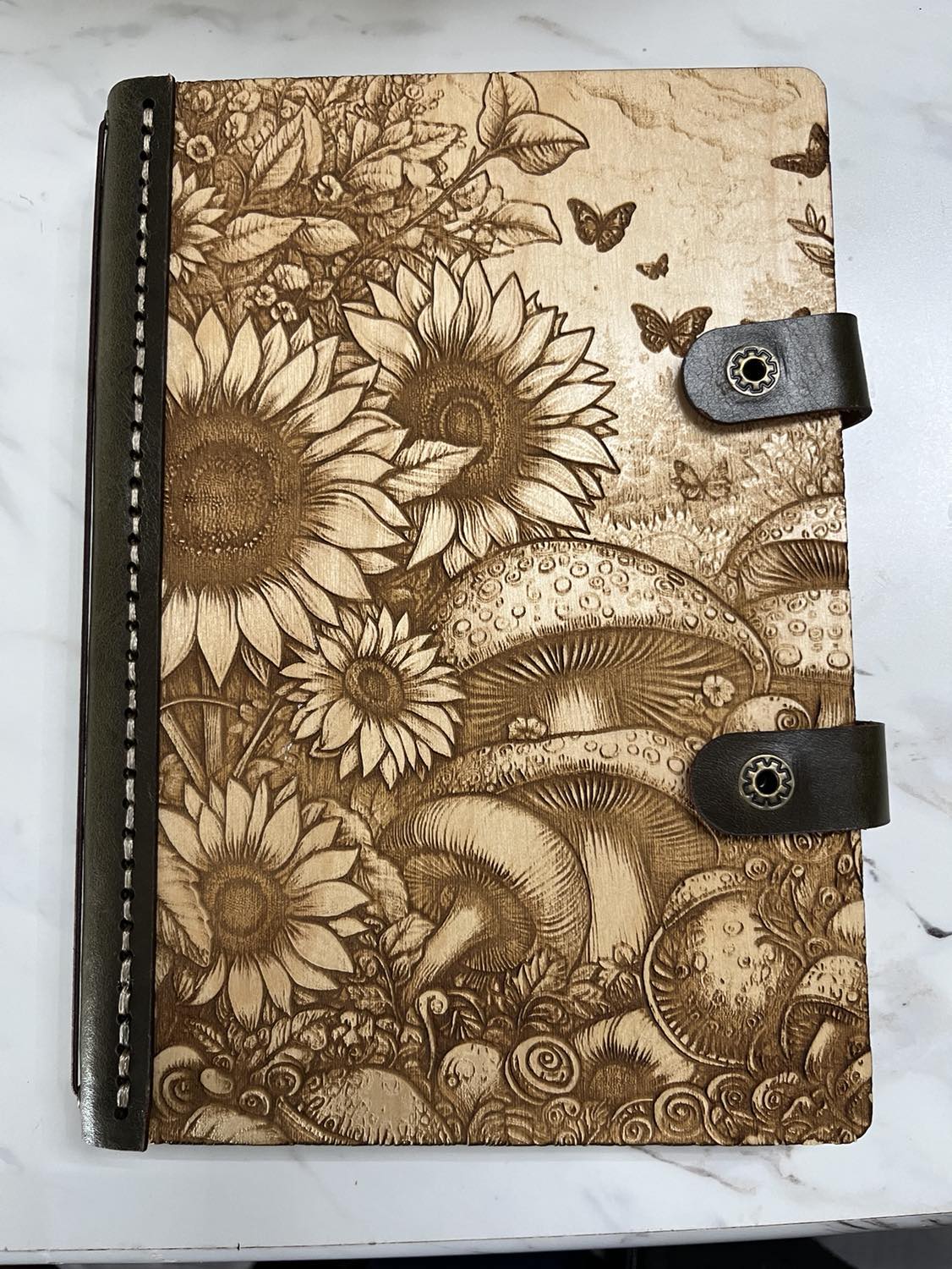 Our hand-stitched journals blend nature and craftsmanship beautifully. Made from white birch wood and genuine leather, each journal features unique, custom-engraved designs.