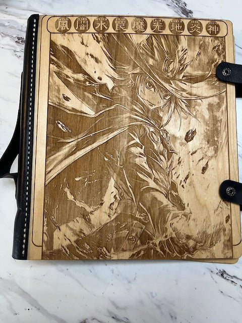 Our handcrafted binders are a stunning way to display and protect your favorite card collections, campaign notes, and more. Made from engraved white birch wood and hand-stitched to genuine leather, each binder blends beauty, durability, and high-end craftsmanship.