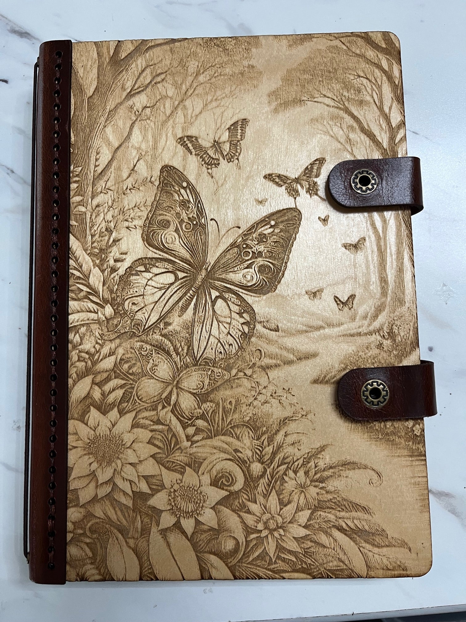 Our hand-stitched journals blend nature and craftsmanship beautifully. Made from white birch wood and genuine leather, each journal features unique, custom-engraved designs.